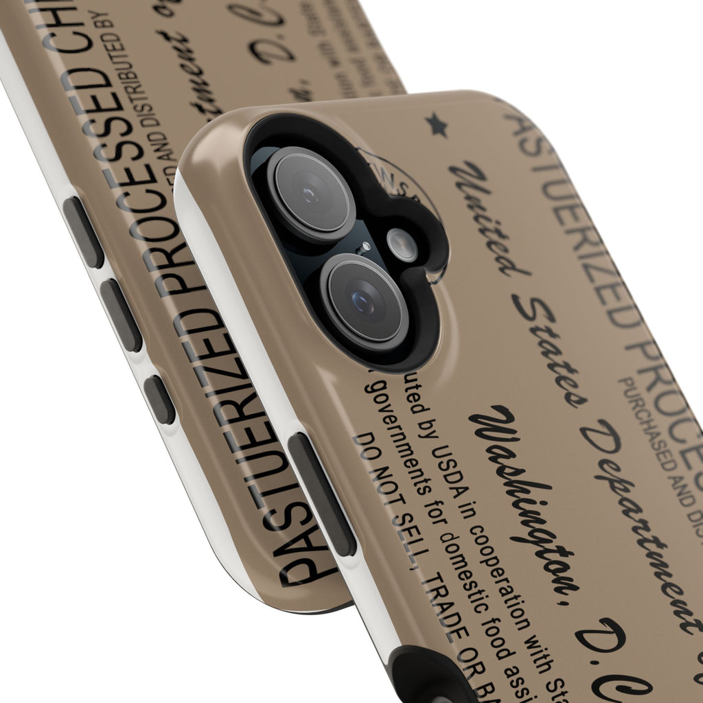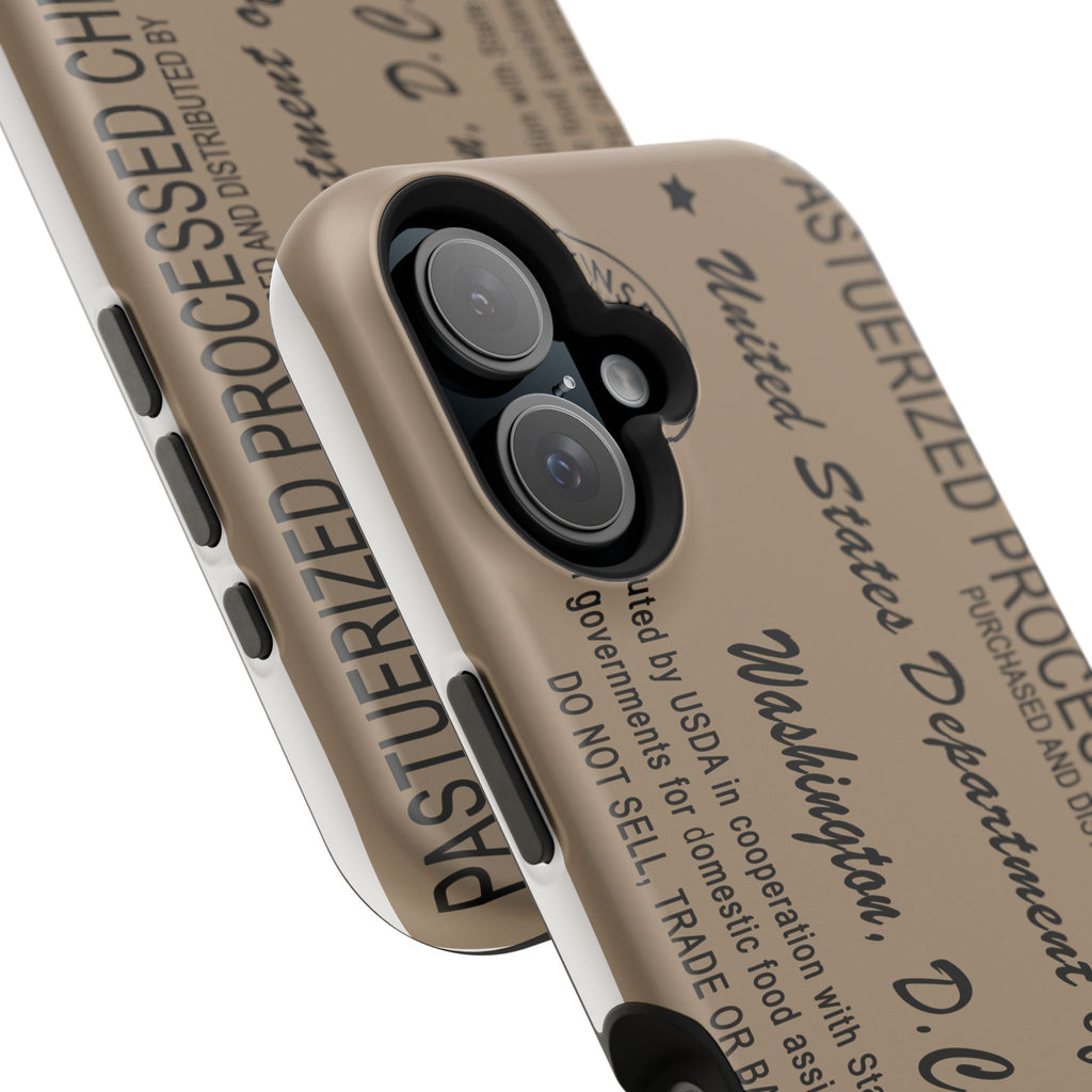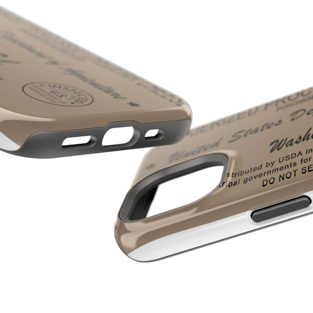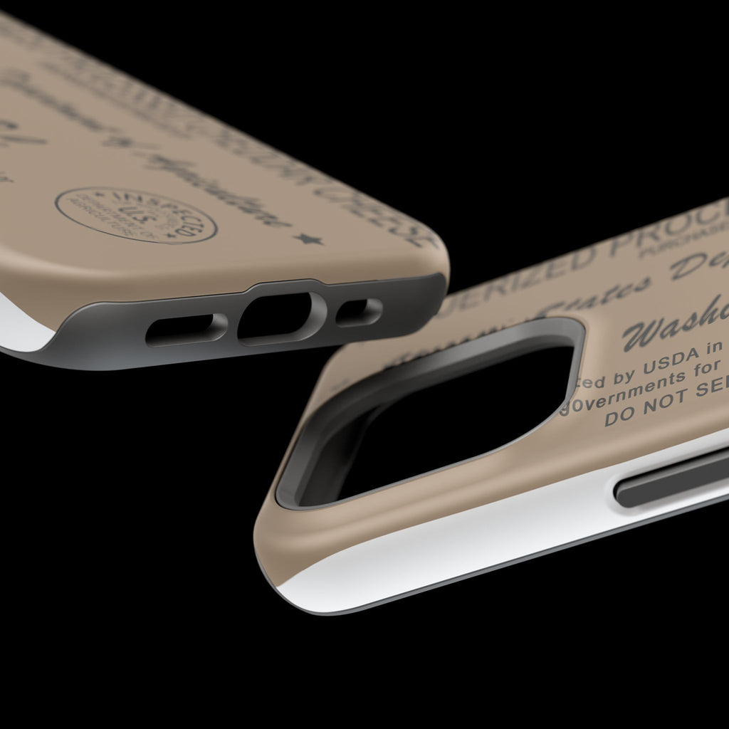 This impact-resistant phone case blends vintage-label charm with modern protection. The full-wrap print echoes an old government stamp and product label, giving your phone a warm, nostalgic look while the dual-layer construction and cushioned TPU liner keep it safe from everyday bumps and drops. Embedded magnets make it work with MagSafe accessories, and you can choose a glossy or matte finish to match your style. Lightweight but sturdy, it wears like an heirloom while guarding your device with up-to-date shock resistance.